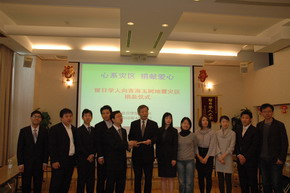 中新網(wǎng)4月21日電 據(jù)《日本新華僑報(bào)》報(bào)道,青海玉樹地區(qū)發(fā)生7.1級(jí)強(qiáng)烈地震后,廣大留日學(xué)人通過各種媒體密切關(guān)注抗震救災(zāi)情況、關(guān)注災(zāi)區(qū)的同胞命運(yùn)。4月18日上午,全日本中國留學(xué)生學(xué)友會(huì)會(huì)長胡昂以及東京大學(xué)、東京工業(yè)大學(xué)、筑波大學(xué)、早稻田大學(xué)、慶應(yīng)大學(xué)、東京海洋大學(xué)、千葉大學(xué)、日本大學(xué)等8所大學(xué)的中國留學(xué)生學(xué)友會(huì)會(huì)長來到教育處,將留日學(xué)子為青海省玉樹地震災(zāi)區(qū)募集的第一批賑災(zāi)款60萬日元送到了教育處。中國駐日本大使館公使銜參贊孫建明代表教育處接受了來自留日學(xué)子的第一筆愛心捐款。