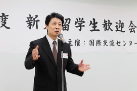 歡迎會(huì)上,札幌大學(xué)校長(zhǎng)宮腰昭男先生代表學(xué)校致詞。