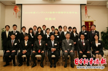 中新網(wǎng)5月18日電 據(jù)日本新華僑報(bào)網(wǎng)報(bào)道,5月15日,由日本英巴斯特證券株式會(huì)社發(fā)起的2010年度“中國(guó)留學(xué)生獎(jiǎng)學(xué)金”頒獎(jiǎng)儀式,在中國(guó)駐日本大使館教育處隆重舉行。中國(guó)駐日本大使館教育處公使銜參贊孫建明、日本英巴斯特證券株式會(huì)社代表取締役社長(zhǎng)川路猛出席儀式并向獲獎(jiǎng)中國(guó)留學(xué)生頒獎(jiǎng)。協(xié)助本次獎(jiǎng)學(xué)金制度的施和獲獎(jiǎng)評(píng)選的《日本新華僑報(bào)》社社長(zhǎng)吳曉樂、全日本中國(guó)留學(xué)生學(xué)友會(huì)的代表也出席了本次儀式。