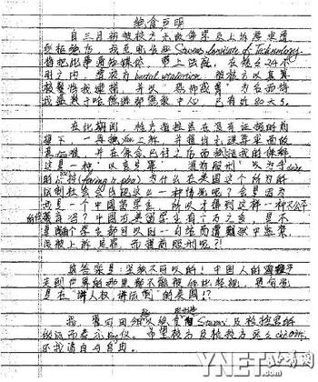 翟田田:手寫絕食聲明