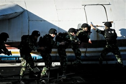 這是武警上?傟(duì)前天組織的一場(chǎng)反劫機(jī)模擬演練。據(jù)了解,組建于2002年7月的武警上?傟(duì)九支隊(duì)反劫機(jī)中隊(duì),是國內(nèi)第一支武警反劫機(jī)中隊(duì),主要擔(dān)負(fù)江浙滬皖三省一市20個(gè)機(jī)場(chǎng)的地面反劫機(jī)任務(wù)以及處置本市其他暴力、恐怖事件。近年來,該總隊(duì)積極探索現(xiàn)代條件下駐城市部隊(duì)反恐斗爭的特點(diǎn)、規(guī)律,研究相應(yīng)戰(zhàn)法和戰(zhàn)術(shù)手段,通過設(shè)置各種復(fù)雜情況下反恐反劫持戰(zhàn)斗預(yù)案,開展近似實(shí)戰(zhàn)的模擬演練,不斷磨礪尖刀部隊(duì)的鋒芒,提高部隊(duì)的戰(zhàn)斗能力。組建10年來,反劫機(jī)中隊(duì)先后27次參加公安、武警組織的反劫機(jī)和反恐怖事件演練,全部成功處置,56人立功受獎(jiǎng),被譽(yù)為上海武警反恐處突的“拳頭”和“尖刀”。(章樂平 王小磊 劉天 朱斌)