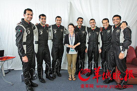 羊城晚報(bào)記者與阿聯(lián)酋騎士飛行表演隊(duì)全部飛行員合影