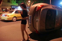 高跟女子翻車毫發(fā)無損
