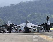 在此次美菲聯(lián)合登陸演習(xí)中,一架AV-8B鷂式戰(zhàn)斗機(jī)從好人理查德號(hào)兩棲攻擊艦上起飛。
