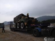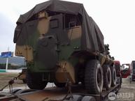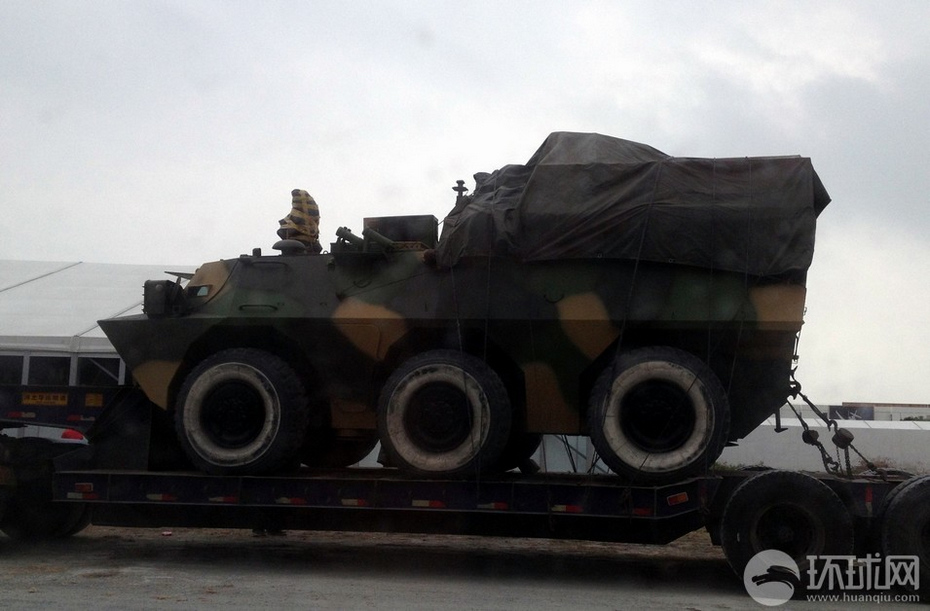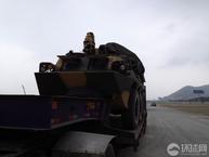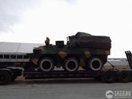 第九屆中國國際航空航天博覽會(2012珠海航展)將于11月13日在廣東省珠海市金灣區(qū)三灶鎮(zhèn)隆重開幕。8日,環(huán)球網(wǎng)記者提前來到布展現(xiàn)場,發(fā)現(xiàn)一輛6×6輪式裝甲車已經(jīng)由拖車運抵,等待卸車布展。該裝甲車的底盤與92步戰(zhàn)車基本相同,車體后上部高高隆起并蒙有帆布,加裝了很多設(shè)備,從參加珠海航展的性質(zhì)預(yù)測,可能是新型外銷型號;車體后部沒有發(fā)現(xiàn)螺旋推進裝置,用途應(yīng)該限于陸地。(來源:環(huán)球網(wǎng))