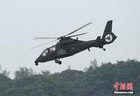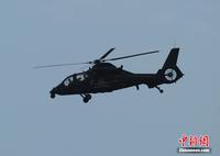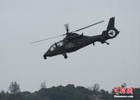 中新網(wǎng)珠海11月11日電(陳海峰) 中國陸航直19武裝直升機11日在珠海航展上空進行了精彩的飛行表演。