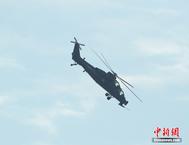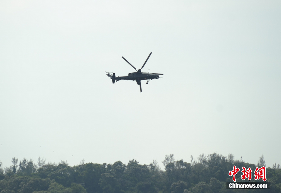 中新網(wǎng)珠海11月11日電(陳海峰) 11日上午,中國武直10武裝直升機(jī)首次在珠海上空公開亮相,并進(jìn)行了適應(yīng)性飛行訓(xùn)練,其做出倒飛、低空盤旋、萊維斯曼翻轉(zhuǎn)等多個精彩動作,在短暫現(xiàn)身后離開航展上空。