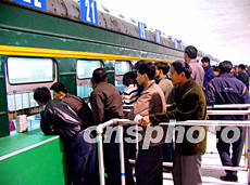 為方便旅客在春運期間順利買到火車票,廣東春運第一個“售票專列”十二日正式啟用。該“專列”位于廣州黃沙南站,由八列火車車廂改造而成,共設(shè)四十八個售票窗,二十四小時售票。作者:羅仰明