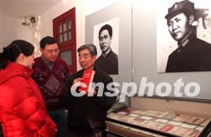為紀(jì)念毛澤東誕辰109周年,收藏家奚景鵬先生《毛澤東著作早期版本收藏展》一月正在北京展出。674冊毛澤東著作早期版本,都是建國前出版的毛澤東選集、文集、著作單行本專著著作匯編本、等,圖為收藏家奚景鵬先生(右一)正在為參觀者講解他收藏的毛澤東著作各類版本。作者:張勤