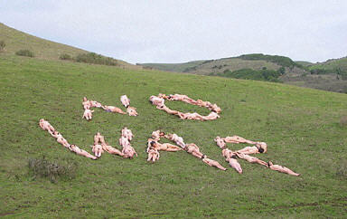 這些為和平呼吁的婦女已經(jīng)擺過七次造型,供媒體進(jìn)行拍攝。她們曾經(jīng)在一處海灘用裸體拼寫過“和平”一詞;還有一次她們在加利福尼亞州的一處農(nóng)場的山坡上拼寫“不要戰(zhàn)爭”的口號。