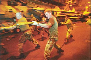各種戰(zhàn)前演習(xí)頻頻在海灣展開(kāi)。1月27日,聯(lián)合國(guó)武器核查小組負(fù)責(zé)人布利克斯將向安理會(huì)提交對(duì)伊拉克武器核查報(bào)告。如果薩達(dá)姆不能讓美國(guó)滿意,布什隨時(shí)可能扣動(dòng)戰(zhàn)爭(zhēng)的扳機(jī)。