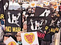 日本星期六掀起了全球周末反戰(zhàn)浪潮的第一波。五千多人星期六在首都東京集會﹐人數(shù)在日本全國當天舉行的十來個抗議集會中最多。