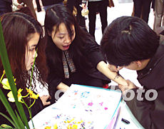 趕時(shí)尚的福州女孩,今年春節(jié)前玩起人體彩繪,在街頭商店里花錢把色彩張揚(yáng)的花卉和動(dòng)物圖案繪在手臂上,可以不時(shí)向同伴炫耀一番。作者:華小銳