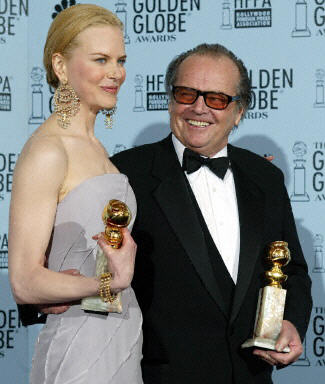 圖為妮可·基德曼(左)和杰克·尼克爾遜(右)分別獲得劇情類電影最佳女、男主角獎(jiǎng)。