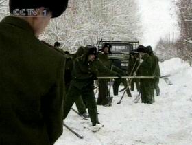 中央電視臺記者在雪崩現(xiàn)場看到,5000多方積雪順山體沖下,造成阿勒泰市區(qū)2000多米道路受阻,一百多米圍墻被沖倒,10多戶住家、約50多人受災。