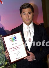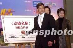 歌星郭富城1月22日在香港出席廣東千秋傳媒有限公司投資的電視劇“動(dòng)感豪情”簽約儀式,郭富城在該電視劇擔(dān)任男主角,亦是他主演的首部國(guó)產(chǎn)電視劇,該電視劇全劇以香港作為背景,透過內(nèi)地87個(gè)電視臺(tái)播放,讓內(nèi)地超過數(shù)以億計(jì)的觀眾收看,這將有助內(nèi)地觀眾來香港旅游的興趣。中新社傳真 鄧慶樂 攝