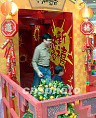 香港一對(duì)父女,周日在愉景新城電動(dòng)爆竹廊中玩樂(lè),感受新年熱鬧氣氛。洪少葵 攝