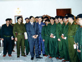 薩達(dá)姆接見的軍方高級(jí)將領(lǐng)除其次子庫(kù)賽外,還包括伊拉克國(guó)防部長(zhǎng)蘇爾坦-哈什姆等人。