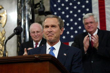 美國當(dāng)?shù)貢r間1月28日晚,布什總統(tǒng)在國會山發(fā)表了一年一度的《國情咨文》。