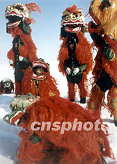駐守新疆雪域高原的解放軍官兵在冰天雪地舞獅鬧春,春節(jié)喜慶的氣氛洋溢在邊關(guān)軍營(yíng)。作者:馬林