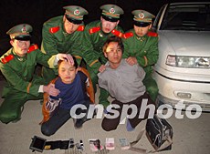 案發(fā)后,福建長(zhǎng)樂松下邊防派出所接到長(zhǎng)樂市公安局案情通報(bào),迅速組織干警在長(zhǎng)樂福清交界處的松下鎮(zhèn)路段進(jìn)行設(shè)卡攔截。下午五時(shí)十分左右,劫匪駕車逃逸時(shí)發(fā)現(xiàn)有干警在設(shè)卡檢查,遂掉轉(zhuǎn)車頭沿原路瘋狂逃竄,干警隨即緊追不舍,其中二名劫匪被當(dāng)場(chǎng)擒獲,現(xiàn)場(chǎng)繳獲自制手槍一支(內(nèi)裝二發(fā)彈)、匕首二把、轎車和手機(jī)及贓款二萬(wàn)零一百三十元人民幣等各類作案工具和贓物。