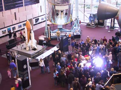 眾多美國人在國家宇航博物館觀看哥倫比亞失事專題報(bào)道