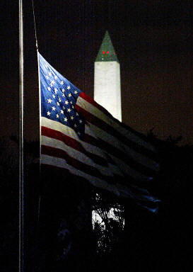 美國東部時(shí)間2月1日上午9:00(北京時(shí)間1日晚10:00),就在“哥倫比亞”號航天飛機(jī)即將返回佛羅里達(dá)州的肯尼迪航空中心前數(shù)分鐘,該飛船突然發(fā)生分裂解體現(xiàn)象,有碎片從飛船上落下。機(jī)上7名宇航員沒有生還的跡象。圖為:美國華盛頓降半旗紀(jì)念哥倫比亞號失事宇航員。