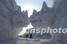 冰天雪地的長春凈月潭為新春游覽設立雪雕恐龍世界,營造北國侏羅紀傳奇。作者:賈國榮