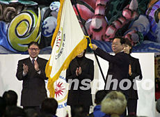 中新社青森二月八日電(記者 陶光雄)為期八天的第五屆亞洲冬季運(yùn)動會今天在日本青森落下帷幕,中國長春市市長祝業(yè)精在閉幕式上,從亞奧理事會副主席霍震霆手中接過會旗,與各國運(yùn)動員相約于二00七年的長春第六屆亞冬會。