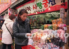 情人節(jié)將至,氣候寒冷的韓國(guó)首都漢城市刮起“情人節(jié)熱浪”,許多專(zhuān)門(mén)銷(xiāo)售情人節(jié)糖果的專(zhuān)賣(mài)店吸引了不少選購(gòu)情人節(jié)禮物的女青年。作者:任晨鳴