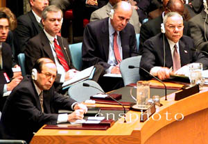 真所謂“不是冤家不聚頭”,伊拉克常駐聯(lián)合國(guó)代表穆罕默德·杜里列席會(huì)議,而且就落座于美國(guó)國(guó)務(wù)卿鮑威爾身旁。鮑威爾不時(shí)地瞟著杜里,看他聽(tīng)別人發(fā)言時(shí)忙些什么。發(fā)言中,鮑威爾稱(chēng)伊拉克領(lǐng)導(dǎo)人是“瘋子”,始終玩弄各種花招,欺騙世界。他還強(qiáng)硬地要求伊拉克“必須服從”,解除武裝。杜里始終鎮(zhèn)靜地做著筆記。發(fā)言中,他很低調(diào)地表白:伊拉克已經(jīng)完全敞開(kāi)了武器核查的大門(mén),目的是向全世界證明,沒(méi)有大規(guī)模殺傷性武器。他諷刺說(shuō):“這出乎有些人的意料,他們對(duì)我們前所未有的合作感到吃驚!