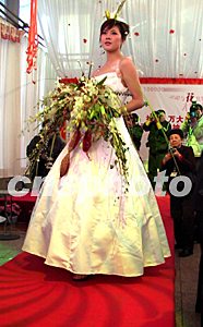 十五日,北京首屆花藝時裝秀在北京大森林花卉市場拉開序幕,由歐美引進(jìn)的結(jié)合插花藝術(shù)和服裝設(shè)計為一體的時裝秀首次在京亮相。作者:廖文靜