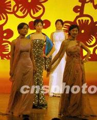 解放軍駐北京某部女戰(zhàn)士在元宵文藝晚會上進(jìn)行時裝表演。時裝表演在解放軍女兵中很流行,這些軍中少女在節(jié)假日里時常利用報(bào)紙、床單等物品,制成時裝在軍營中展示美麗。作者:宋吉河