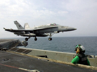 F/A-18“超級黃蜂”(SuperHornet)艦載多用途超音速戰(zhàn)斗機,由美國麥克唐納·道格拉斯公司制造,1995年首次飛機,裝備于“林肯”(USS Abraham Lincoln)號核動力航空母艦。
