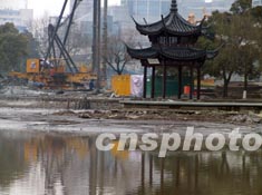 杭州西湖湖底隧道工程動工以來,西湖湖面以平均每天三十厘米的速度下降,截至十八日下午,西湖已基本見底。據(jù)悉,這是西湖近百年來第二次見底,第一次見底是一九五五年底至一九五六年初,由大旱造成。作者:張茵