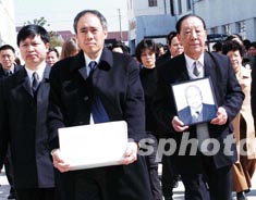 二月二十日,世界著名高能物理學家袁家騮教授的骨灰,在其親屬及江蘇省太倉市官員、太倉市明德中學代表的護送下,從北京運抵故鄉(xiāng)太倉安葬。當?shù)孛鞯轮袑W的學生前往迎接。袁先生生前曾先后捐助明德中學五百余萬元,幫助明德中學建起了科技樓,明德樓。作者:王大經(jīng)