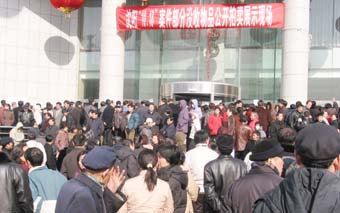 中新網(wǎng)2月21日電 昨日下午,沈陽各界人士紛紛涌向“慕馬”案件沒收物品公開拍賣展示現(xiàn)場——金劍大廈,由于展示現(xiàn)場空間有限,加上事先沒有預(yù)料到有上萬觀眾前來觀看,所以部分觀眾被“拒之門外”。
