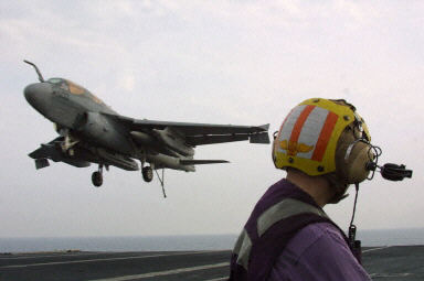 EA-6B“徘徊者”(Prowler)全天候電子作戰(zhàn)機通過其攜帶的反輻射及干擾導彈對敵方雷達、電子通訊設備實施打擊及干擾,從而為美陸、海、空三軍提供無干擾作戰(zhàn)保障。該機型是以A-6“入侵者”戰(zhàn)斗機的架構改造而來。由美國諾斯羅普格魯曼航空航天公司制造,1971年進入海軍服役。