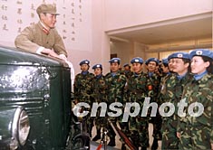 又一批即將派出的中國(guó)維和部隊(duì)官兵,來(lái)到遼寧省撫順市雷鋒博物館參觀,在雷鋒擦汽車(chē)的蠟像前感受這位平凡戰(zhàn)士的風(fēng)采。作者:陳剛