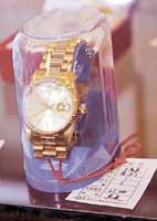 據(jù)說慕綏新當(dāng)時(shí)定制這套球桿的價(jià)格高達(dá)二點(diǎn)五萬美元,而今天這套球桿的起拍價(jià)僅為一千零八十元人民幣。這套球桿起拍開始后,隨著競(jìng)標(biāo)人一次次加價(jià),其價(jià)格就一路狂奔、節(jié)節(jié)攀升,現(xiàn)場(chǎng)氣氛極其熱烈。當(dāng)一位大連商人喊出十萬零一千元的高價(jià)后,一位董姓商人當(dāng)即喊出十二萬元的高價(jià)。這只十二高爾夫球桿最終以每桿一萬元的高價(jià)歸到了這位志在必得的董姓商人名下。據(jù)說這位行蹤神秘的董姓商人來自外地,高價(jià)買下這十二只球桿是要作為反腐敗教育的永久性紀(jì)念,他拍賣成功后便迅速離開現(xiàn)場(chǎng),不肯接受記者采訪。當(dāng)劉志堅(jiān)敲響今天上午最后一聲悅耳有力的拍賣槌時(shí),今天上午的拍賣會(huì)以一百九十六點(diǎn)五萬元的最終成交額“一錘定音”。這比拍賣師事先估計(jì)的成交額高出六十多萬,包括兩套住宅、一個(gè)車庫、兩個(gè)“五愛市場(chǎng)”檔口以及高爾夫球桿、進(jìn)口跑步機(jī)等七個(gè)運(yùn)動(dòng)器械共計(jì)十二個(gè)標(biāo)的順利拍賣成功。