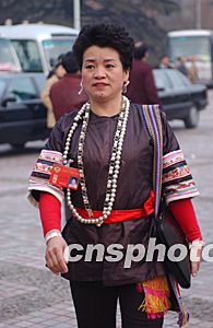 來自貴州的全國政協(xié)委員王先瓊(侗族)身著民族服裝前來北京參政議政。作者:張煒