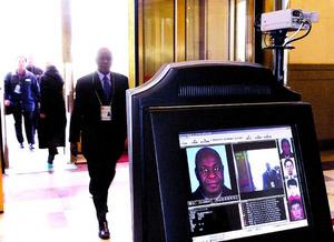 昨天下午,全國政協(xié)十屆一次會議在人民大會堂舉行第一次新聞發(fā)布會。在進門處擺放的一臺屏幕引起了記者們的注意,因為每位記者進門時,都可從屏幕上看到自己的照片、單位等情況。據(jù)了解,這是一套非常先進的安檢系統(tǒng)。