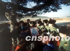 三月初,遼寧省撫順市解放軍官兵與當(dāng)?shù)氐膶W(xué)生,來(lái)到雷鋒照片中的大松樹(shù)下,緬懷雷鋒。作者:陳剛
