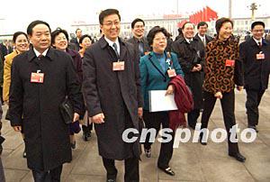 全國人大代表、上海市長韓正(左二)五日率領(lǐng)上海人大代表出席十屆全國人大一次會議開幕式。作者:盛佳鵬