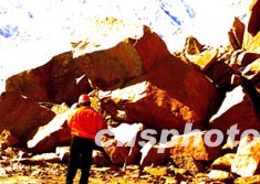 新疆地震后的314國(guó)道克州段,六日上午有一處山體滑坡,大批車輛受阻。作者:宋吉河