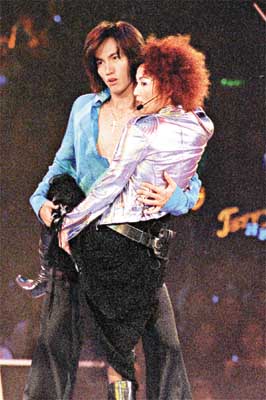 鄭秀文在其表演環(huán)節(jié)中,先獨唱一首,再介紹一身殺手打扮的Jerry出來為她伴舞。隨即二人還合唱《月亮代表我的心》,手拖手外,還邊唱邊舞,當(dāng)中不乏貼身舞姿,Jerry更一手抱著Sammi的大腿。