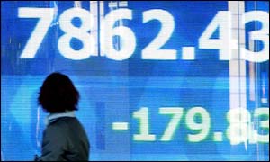 日經(jīng)平均指數(shù)星期二以7,862.43點(diǎn)收盤,比前一天收盤時(shí)跌了179.83點(diǎn),跌幅達(dá)2.2%,這是1983年1月以來的最低點(diǎn)。