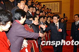 河北華龍集團(tuán)董事長(zhǎng)范現(xiàn)國(guó)發(fā)言時(shí),剛叫了一聲“首長(zhǎng)”,黃菊馬上說(shuō):“大家是一起審議的,不要叫首長(zhǎng),叫黃菊同志就行了!