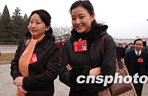 全國政協(xié)委員、軍營歌手宋祖英(右)三月十三日參加全國政協(xié)十屆一次會議第四次全體會議。本次會議將選舉產(chǎn)生新一屆全國政協(xié)主席。作者:張煒