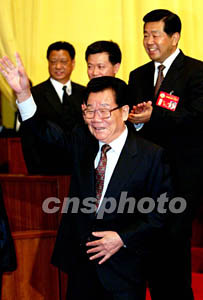 全國政協(xié)十屆一次會(huì)議第四次全體會(huì)議十三日舉行,會(huì)議將選舉出全國政協(xié)新一屆領(lǐng)導(dǎo)人。李瑞環(huán)、賈慶林一同步入會(huì)場。作者:鄭萍萍